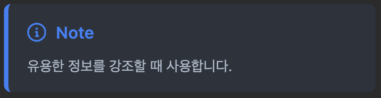 GitHub에서 사용하는 callout 문법을 그대로 지원해요.