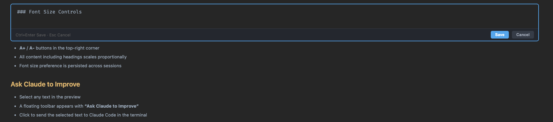 Ctrl+Enter로 저장,ESC로 취소) - ✎ 버튼을 클릭하면 전체 문서 편집 모드로 진입 (