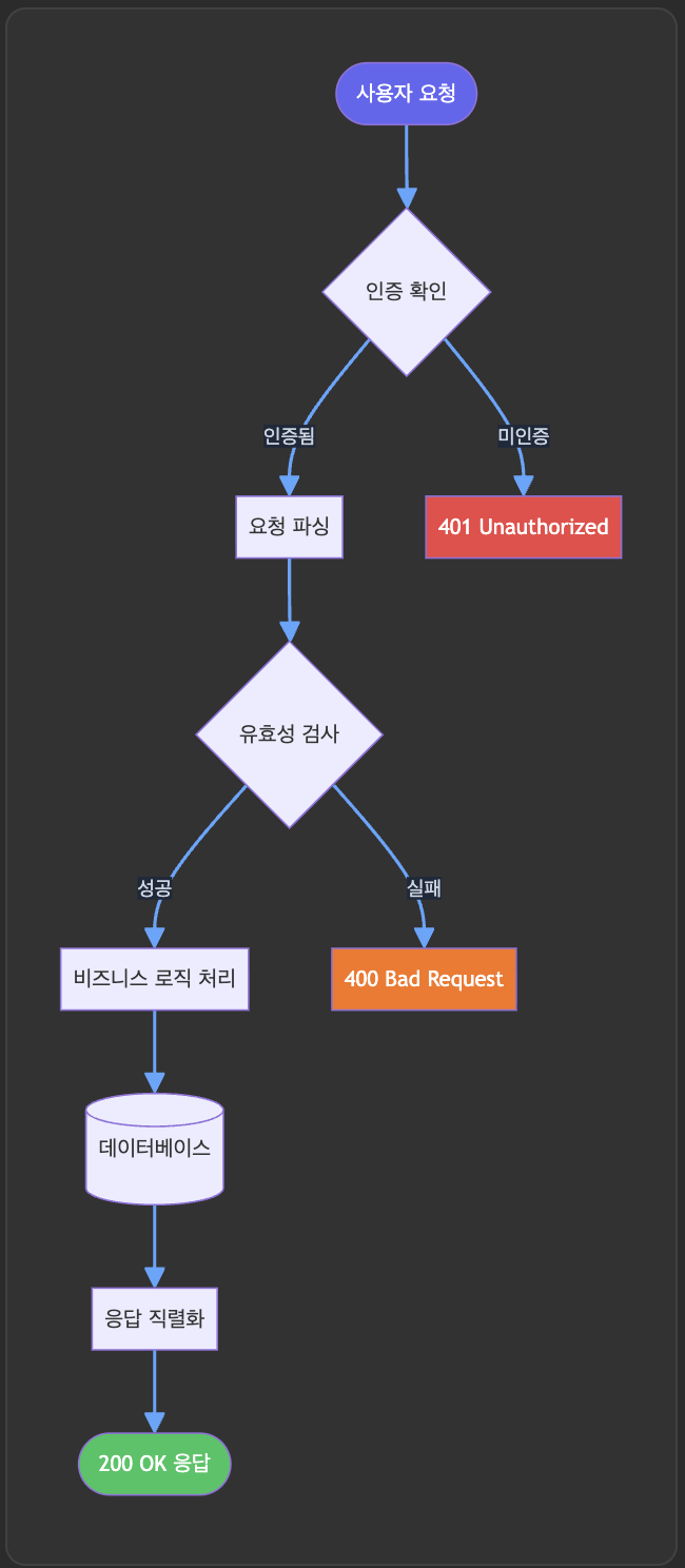 이 외에도 State, ER, Gantt, Pie 차트, Git graph까지 지원해요. Light/Dark 테마에 맞춰 다이어그램 스타일이 자동 전환되고요, 별도의 다이어그램 확장을 설치할 필요가 없습니다.